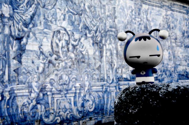 Mas aí um amigo ontem me mandou uma foto desses azulejos. Disse que os viu aqui em Lisboa em 2007 e queria saber que fim teriam levado. É uma pequena arte de rua, num beco desconhecido… Tomei a brincadeira dele como um desafio. Pesquisei na internet para saber se eles tinham alguma história especial; Andei aleatoriamente pelas ruas do Chiado em busca dos tais; Conversei com todo tipo de gente, mostrando a foto e arrancando alguns dedos de prosa com cada interlocutor (turistas, comerciantes, transeuntes, mendigos, vendedores de drogas e policiais). Até que encontrei o que procurava, na chamada “Rua do Crucifixo”.